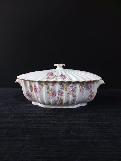 LOTE 129 - JUEGO DE LOZA 45 PIEZAS, DETALLE EN UNA TAPA DE GUISERA